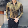 2019 Autumn Long Sleeve Shirt Man Stand Lead Shirt Men Shirt Fashion Streetwear Luxury Line Print Night Club Tuxedo Dress Shirt $56.95 $113.95