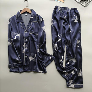 2018 summer luxury silk pajamas mens long sleeved paisley pattern pyjamas set silk satin nightwear soft sleepwear nightgown plus $59.95 $119.95