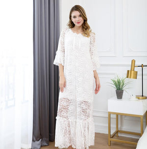 2019 White Gauze Cotton Women's Nightgowns Lace Long Sleepwear Elegant Female Vintage Princess Night Dress Home Wear $55.95 $111.95