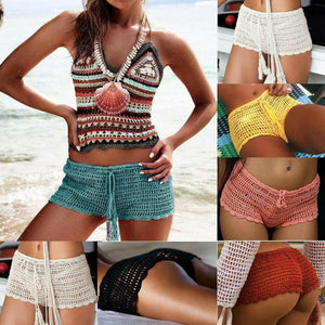 2019 Summer Sexy Women Plain Swim Trunks Crochet Knit Shorts Female Bandage Swimwear Short Swimming Crochet Bottoms $7.78