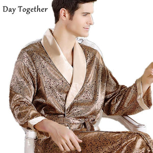Men Silk Bathrobe Big Size 5XL Satin Kimono Gown Home Clothes Man Printed Geometric Robes V-neck Sleepwear Nightgown $58.95 $117.95