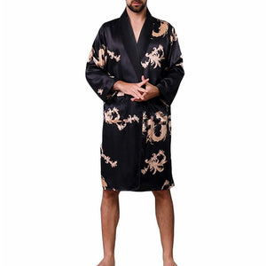 2019 New Spring Autumn Luxury Bathrobe Mens Print Plus Size Silk Satin Pajamas Kimono Summer Male Nightgown Chinese Silk Robe $54.95 $108.95