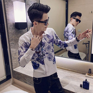 Top Quality British Style Print Shirt Men Brand New Slim Fit Casual Men's Social Shirts Dress Long Sleeve Night Club Prom Tuxedo $52.95 $105.95