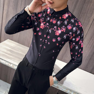 Fashion 2019 Floral Shirt Men Autumn New Long Sleeve Mens Casual Shirts Streetwear Slim Fit Night Club Tuxedo Shirt Dress 3XL-M $56.95 $113.95