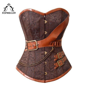 TOPMELON Waist Trainer Gothic Corset Steampunk Corset Women Bustier Corselet Corset Solid Steel Boned Plus Size Tops XS- 7XL $52.58