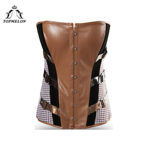 TOPMELON Corset Steampunk Bustier Gothic Corselet Corset Women Sexy Corset Fashion Brown Checkered Party Shows Corset Tops $43.02