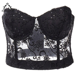 TOPMELON Sexy Corset Corselet Gothic Corset Women Steampunk Corset Bustier Black Steel Bone Lace Floral Party Club Crop Bra Tops $32.36