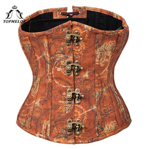 TOPMELON Steampunk Underbust Corset Bustier Gothic Sexy Corset Women Corselet Retro Tan Buckles Gears Pattern Corset Tops $54.80