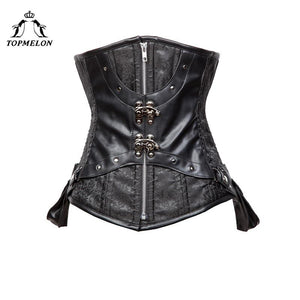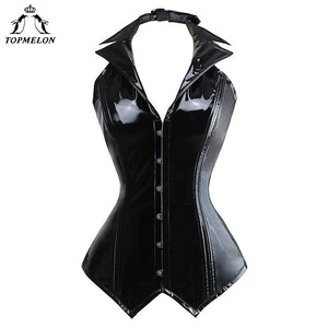 TOPMELON Bustier Steampunk Corset Gothic Corset Women Corselet Sexy Corset Slimming Black Leather Halter Club Party Corset Tops $64.56