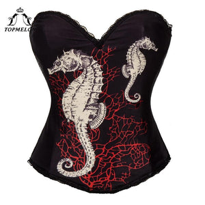 TOPMELON Corselet Corset Waist Trainer Steampunk Bustier Gothic Corset Women Lace Sea Horse Pattern Costume Party Corset Tops $37.54