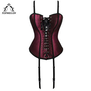 TOPMELON Goth Korse Lace Up Faja Women's Dark Red Steampunk Corset Sexy Overbust Bustiers & Corsets Plus Size S-6XL $36.30