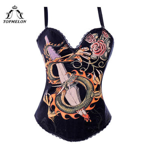 TOPMELON Corset Top Floral Bustiers and Corset Retro Gothic Corselet Women Rose Sword Dragon Pattern Shaper with Spaghetti Strap $34.94
