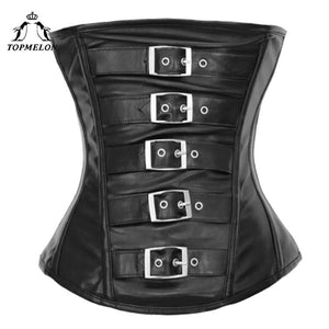TOPMELON Gothic Leather Bustier Tops for Women Underbust Corset Buttons Decorated Black Brown Plus Size Punk Style Clothing $31.84