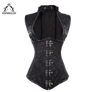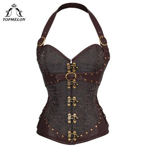 TOPMELON Halter Corselet Steampunk Gothic Retro Vintage Corset Bustier Women Sexy Rivet Steel Boned Floral Shows Play Slim Tops $39.12