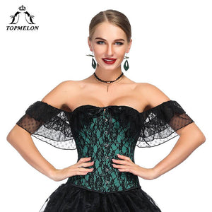 TOPMELON Lace Corset Off Shoulder Slimming Waist Shaper Floral Vintage Bustier Plus Size Corsets for Women Summer Sexy Costume $34.32