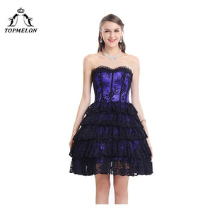 TOPMELON Steampunk Corset Dress Corset Bustier Gothic Corselet Sexy Corset Women Lace Ruffles Floral Party New Short Dress $53.64
