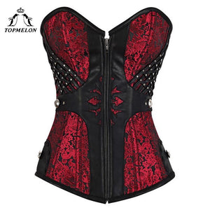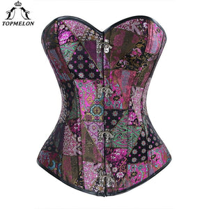 TOPMELON Steampunk Waist Trainer Corset Bustier Gothic Corselet Sexy Corset Women Retro Floral Rivet Party Shows Plays Club Tops $41.42