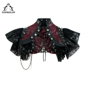 TOPMELON Bustier Corset Lace Chains Short Corsets Tops for Women Retro Steampunk Accessories Rivets Leather Floral Corselet $73.34