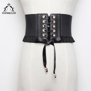 TOPMELON Steampunk Accessories Slimming Belt Waist Trainer Women Modeling Strap Wide Band Underbust Solid Ruffles Lace Up Belts $15.74