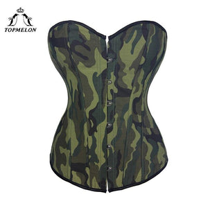 TOPMELON Camouflage Corset Sexy Women Steampunk Gothic Bustier Corselet Green Army Military Lace Up Party Club Shows Corset Tops $23.24