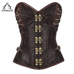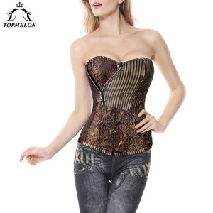 TOPMELON Retro Corselet Steel Boned Corset Women Steampunk Bustier Gothic Sexy Brown Striped Buckles New Tops for Shows Play $34.98