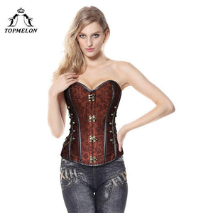 TOPMELON Corset Sexy Victorian Steampunk Bustier for Women Brown Floral Chains Decorated Sleeveless Tops Plus Size S-6XL $52.12