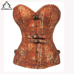 TOPMELON Floral Steampunk Corsets Bustiers Gothic Women Steel Boned Corselet Sexy Retro Buckles Gears Pattern Tops 6XL Plus Size $64.42