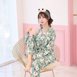 New Nightgown Girl Cotton Printing Pajamas Simple Long-sleeved Trousers Pyjamas Spring Turn-down Collar Home Clothes Sleepwear $84.95 $169.95