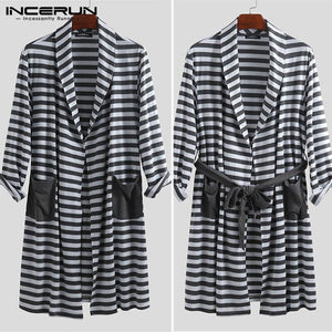 INCERUN Men's Literary Nightgown Striped Lapel Pocket Fashion Long Sleeve 2019 New Loose Tie Long Paragraph High Quality Robe from $48.95 $100.95