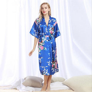 Blue Satin Robes for Brides Wedding Sleepwear Silk Pijama Casual Bathrobe Animal Rayon Long Sexy Bathrobe Nightgown Women Kimono $16.95 $55.95