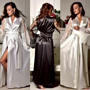 Long Sleeve Imitation Ice Silk Sexy Lace Casual Solid Women Nightdress Sleepwear Mini V Neck Nightgown Lingerie Robe Loose Gift $14.95 $35.95