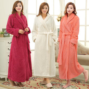 Women Winter Thermal Long Bathrobe Lovers Thick Warm Coral Fleece Kimono Bath Robe Plus Size Nightgowns Bridesmaid Dressing Gown $71.95 $142.95