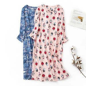 Women 100% Cotton Fresh Cartoon Long Nightgowns Autumn Winter Fashion Long Sleeves Women Sleepdress Indoor Pyjamas Nightdress $35.95 $70.95