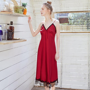 Roseheart Women Fashion Red Sexy Sleepwear Night Faux Silk Nightwear Sleepshirts Long Nightgown Gown Female Spaghetti Strap $50.95 $101.95