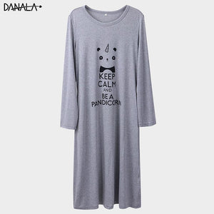 DANALA Animals Casual Long Nightgowns Women Cute Comfortable Peignoir For Women Summer 2019 Long Sleeve Gray Color Home Wear $38.95 $77.95