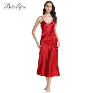 Bikitique Sexy Lingerie Nightgowns Women Satin Solid Spaghetti Strap Sleepwear Homewear Sling Long Nightdress Summer Cami Dress $31.95 $63.95