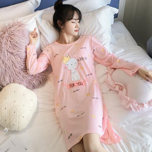 Sweet Girls 100% Cotton Nightgown for Women 2018 Autumn Long Sleeve O-neck Night Dress Cute Cartoon Home Dress Female Nightdress $44.95 $89.95
