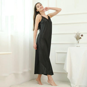 Sexy Women Lace Spaghetti Strap Nightdress Elegant Black Long Suspender Skirt Sleepwear Comfortable Satin Nightgown Size S M L $33.95 $67.95