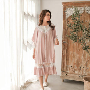 Sweet Fashion White Lace Women's Long Nightgowns Summer Half Sleeve Soft Viscose Loose Female Sleepwear Plus Size $71.95 $142.95