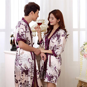 Silk Couples Nightgown For Men And Women White Lace Design Morning Bride Bridesmaid Robes Multi Colors Stitch Couples Pajamas $56.95 $112.95