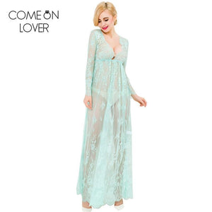 Comeonlover Mint green full sleeve see through lace lingerie dress sheer mesh long female sleepwear princess nightdresses E80302 $41.95 $83.95
