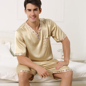 Summer Male Sleep Set Men Pajamas Suits Soft Underwear 2019 Silk Satin Homewear Tee Tops Shorts Nightgown Pyjamas Sleepwear Set from $64.95 $133.95