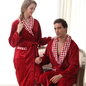 On Sale Lovers Luxury Warm Long Kimono Bath Robe for Women Men Silk Flannel Night Winter Bathrobe Bridesmaid Robes Dressing Gown $42.95 $85.95