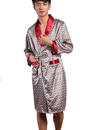 High Quality Spring Autumn Luxury Bathrobe Mens Print Plus Size Silk Satin Pajamas Summer Male Nightgown Robe Costume $68.95 $137.95