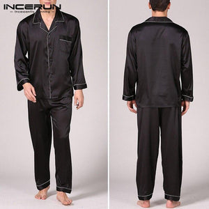 INCERUN Summer Silk Satin Men Pajamas Set Short Sleeve Tops Sleepwear Suit Nightgown Soft Shorts Homewear Pyjamas Set 2019 S-5XL from $42.95 $90.95