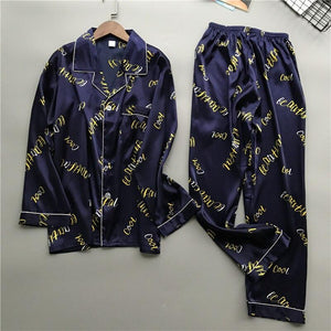 HNMCHIEF Men's Silk Pajama Set Modern Style Sleepwear Men Soft Cozy Satin Nightgown Lounge Pajama Sets NightwearLapel Suit Print $36.95 $73.95