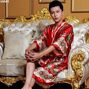 2019 summer red men sexy silk kimono bathrobe gown chinese style male robe nightgown sleepwear plus $77.95 $154.95