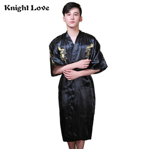 Navy Blue Chinese Men's Silk Satin Robe Embroidery Kimono Bath Gown Dragon Summer Male Nightgown Size S M L XL XXL XXXL $93.95 $186.95