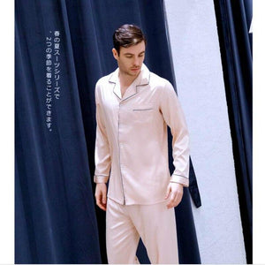 2019 Men's Stain Silk Pajama Set Men Pajamas Silk Sleepwear Modern Style Soft Cozy Satin Nightgown Pajamas long sleeve $50.95 $100.95