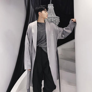 Men Casual Loose Windbreaker Silk Long Night Gown Trench Coat Cardigan Male Streetwear Hip Hop Overcoat Men Clothes $115.95 $230.95